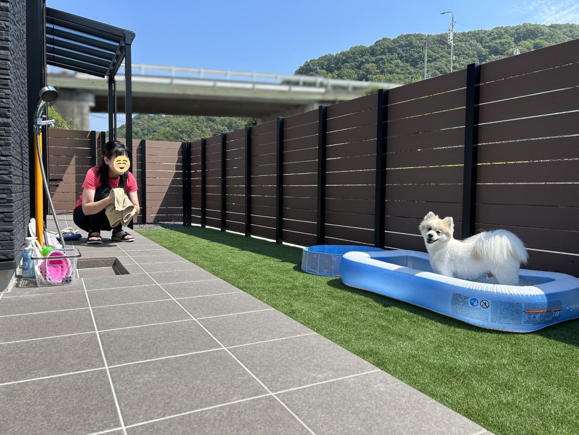 施工事例追加しました!新築外構 ドッグラン、テラス工事《井原市》
