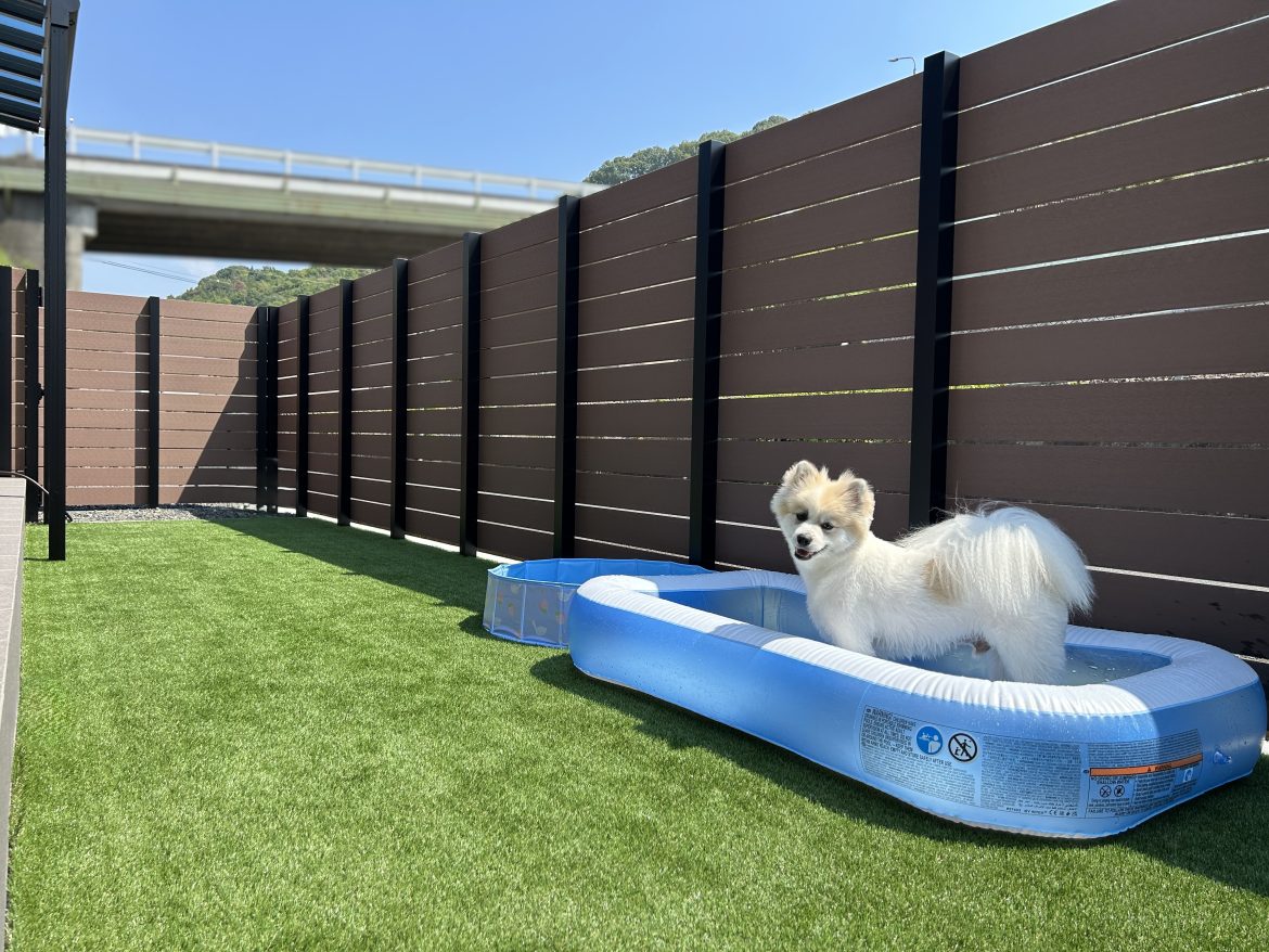 お庭には人工芝。目隠しフェンスも高さがあるので、ワンちゃんを安心して遊ばせることが出来ますね🐕🐾