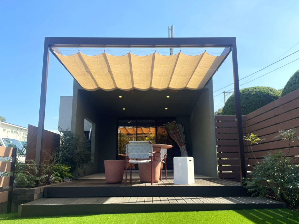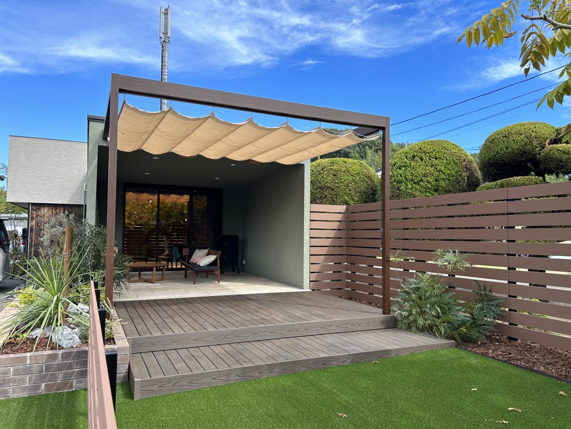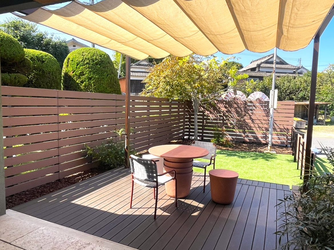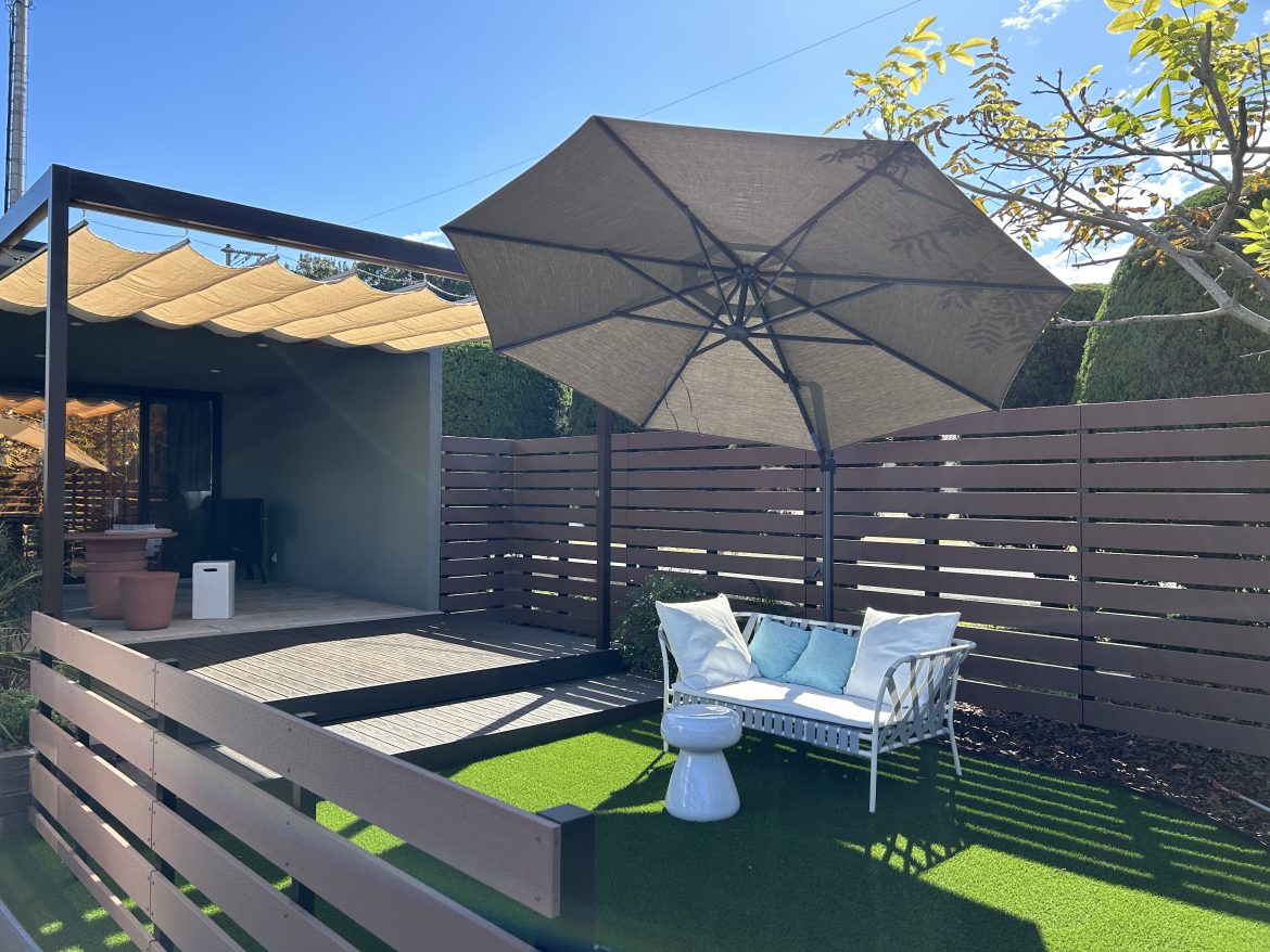 シェードや日除けのパラソルも設置し、快適に過ごせる空間が完成しました(^^)